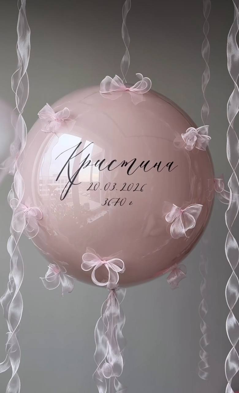 Персонализированные воздушные шары на рождение выглядят особенно трогательно. Большой прозрачный шар парит в центре композиции. Нежно-розовый цвет сразу приковывает взгляд. Четкая надпись в изящном шрифте рассказывает историю малыша.